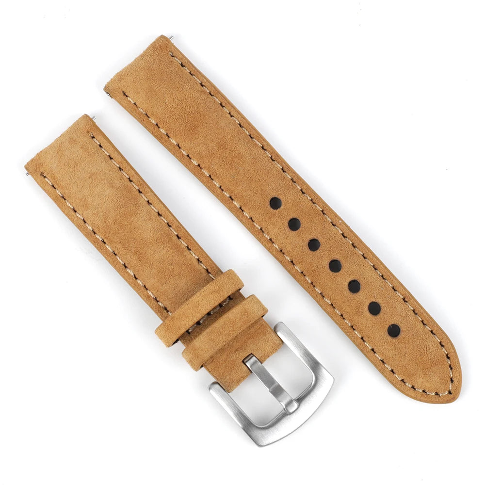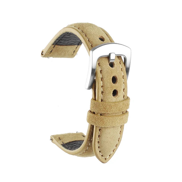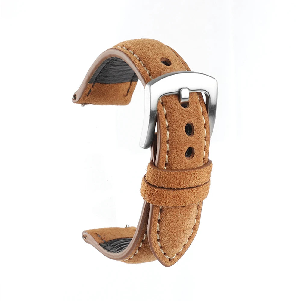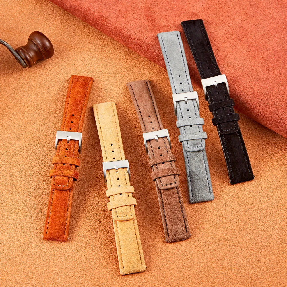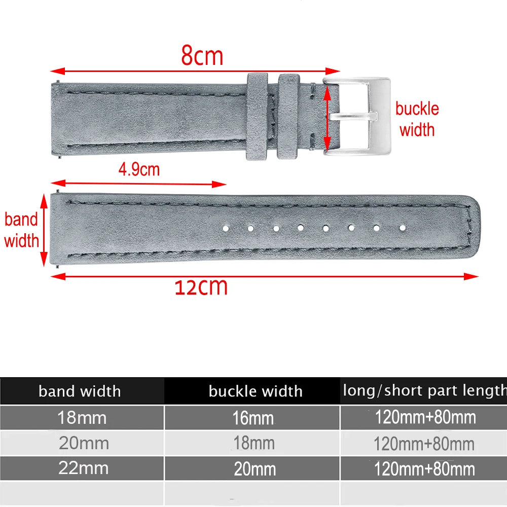 SOFT MATERIAL:The front is made of suede leather, which has a natural leather texture and delicate touch. The back is made of calfskin, which is soft and smooth, can better fit the skin of the wrist.The middle layer is made of elastic nylon,in order to retain its suppleness.